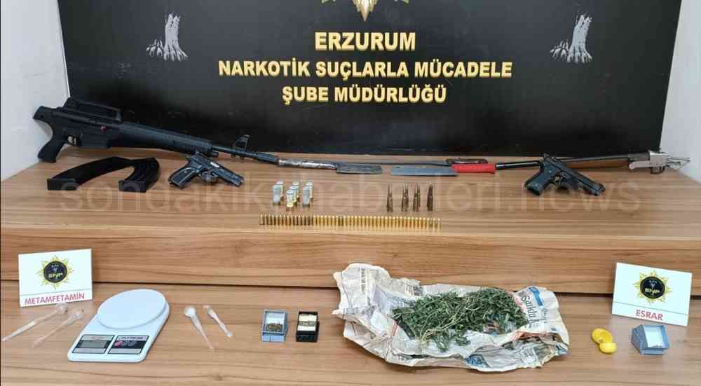 Operasyon kapsamında yakalanan şüphelinin üzerinden uyuşturucu maddelerin yanı sıra ruhsatsız tabanca, tüfek, çok sayıda mermi ele geçirildi. Şahıs gözaltına alınarak adli mercilere sevk edildi.